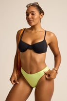 The Hype Girl brings the perfect blend of lift and energy with a supportive underwire top that keeps everything in place. With adjustable straps and a tie back closure, it's designed for all-day comfort that feels as good as it looks. Experience beach bar ready confidence and style all in one game-changing piece.