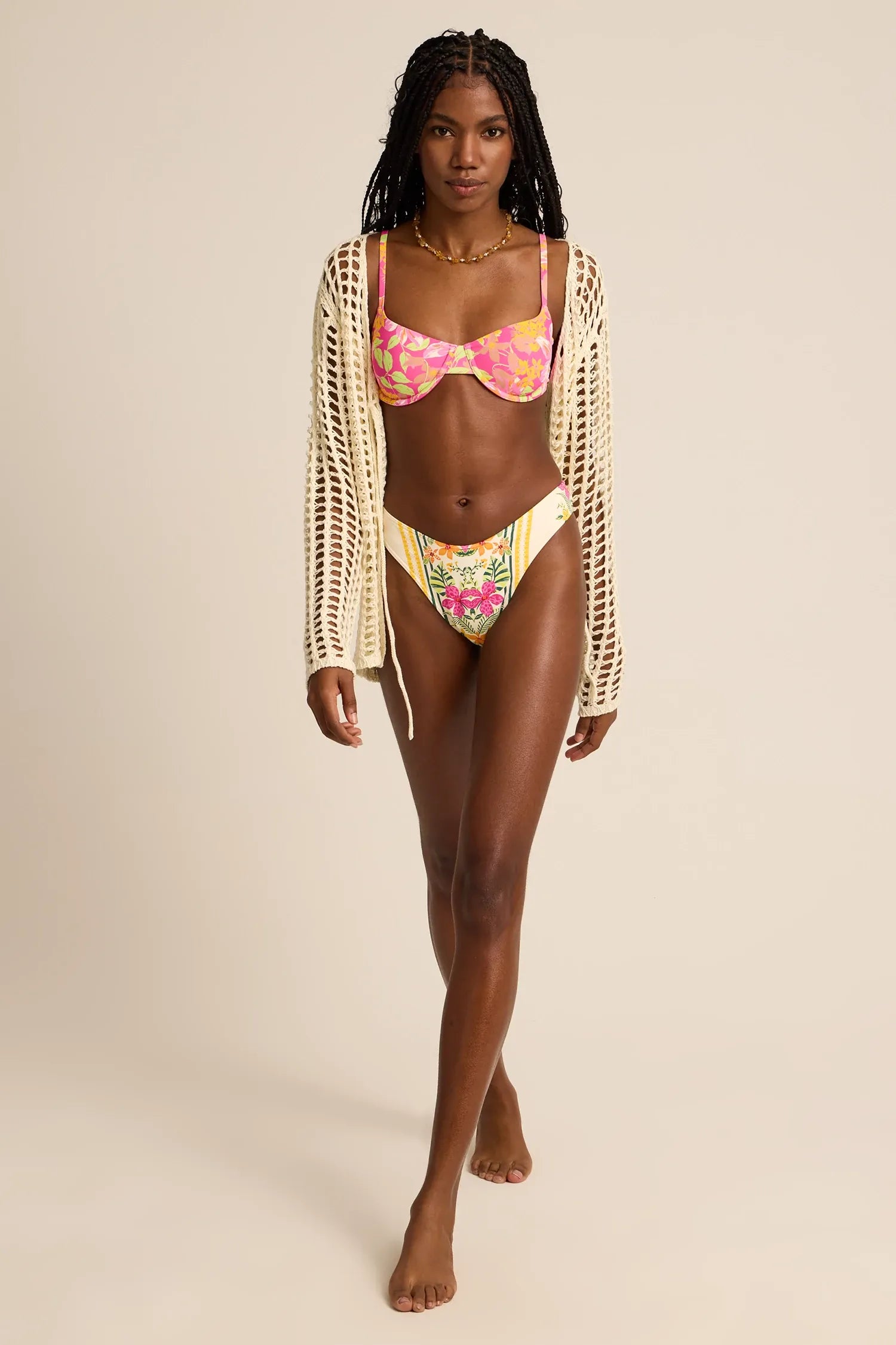 Cream w/ pink, yellow, and green tropical florals